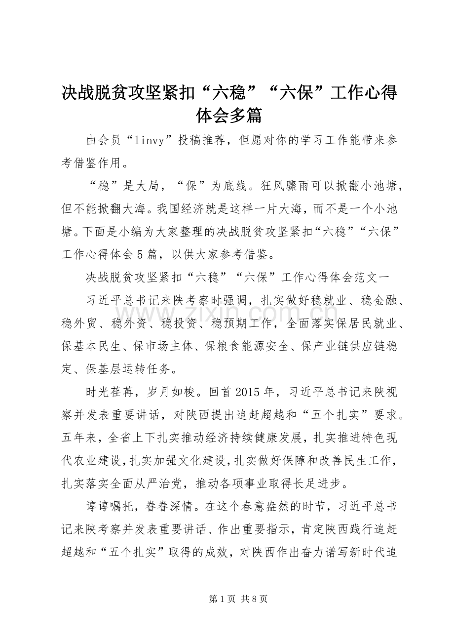 决战脱贫攻坚紧扣“六稳”“六保”工作心得体会范文一