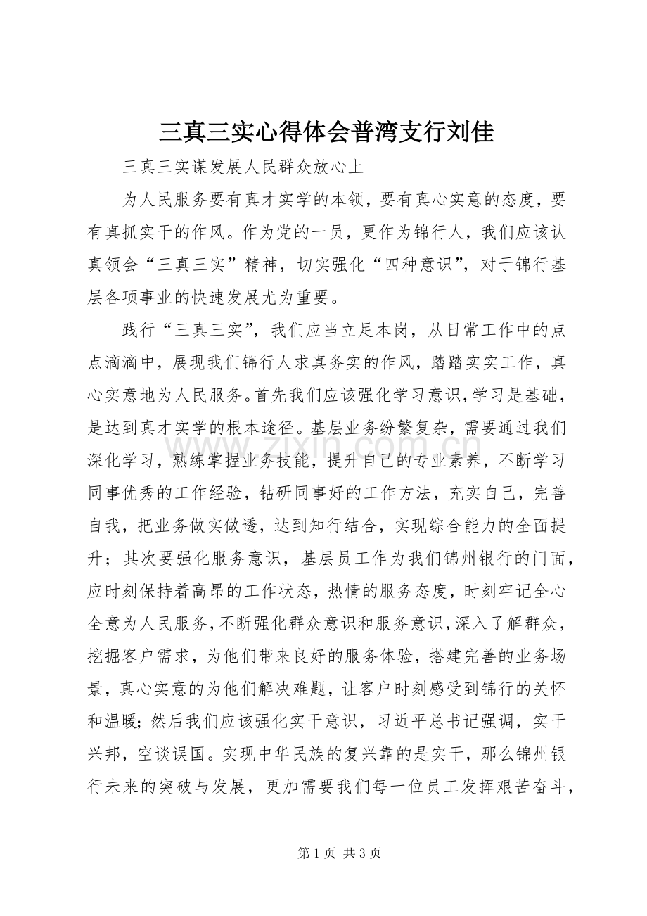 三真三实心得体会普湾支行刘佳