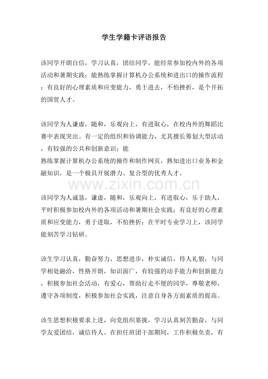 学生学籍卡评语报告