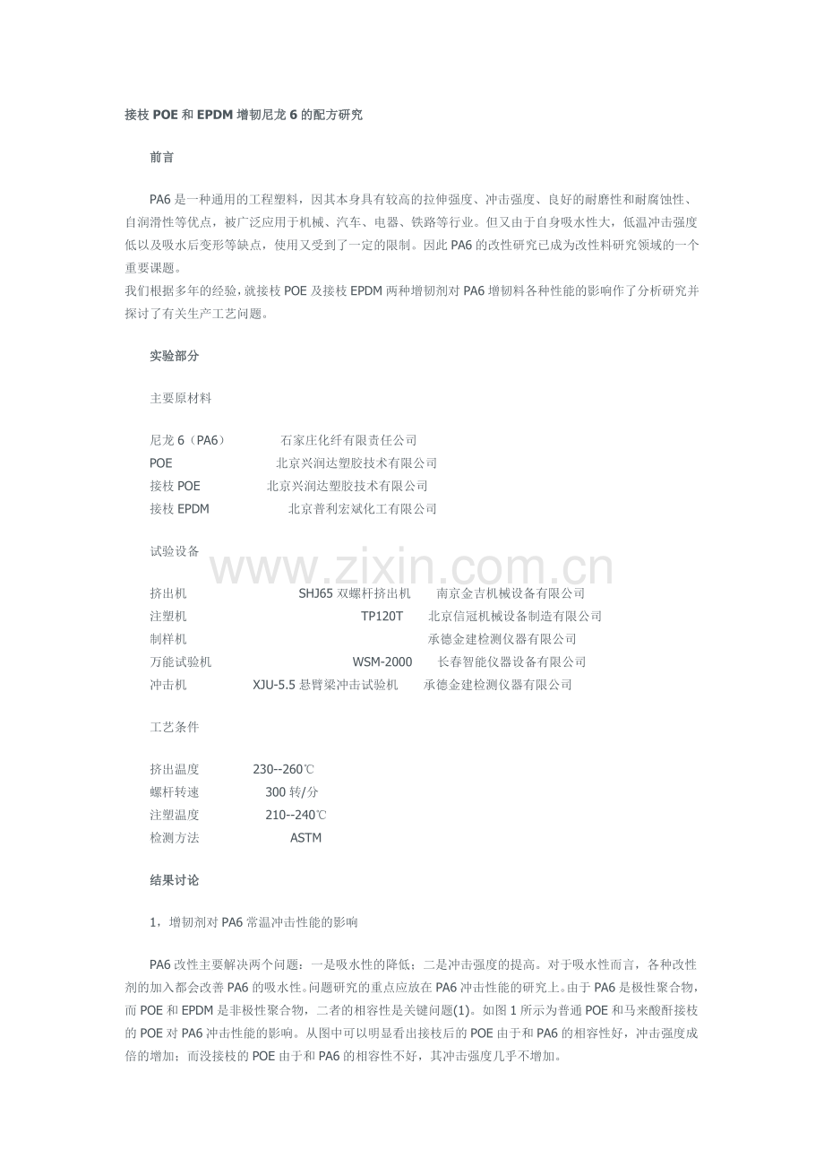 我们根据多年的经验,就接枝POE及接枝EPDM两种增韧剂对PA6增韧料各种性能的影响作了分析研究并探讨了有关生产工艺问题。