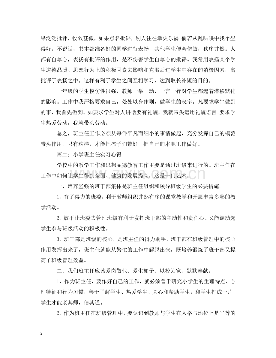 小学班主任实习心得