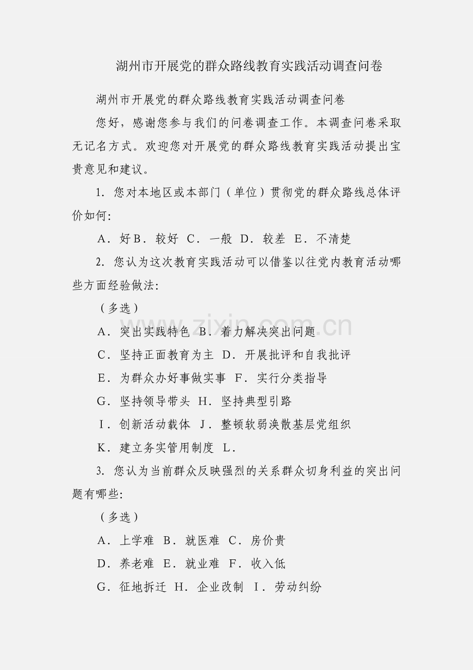 您好,感谢您参与我们的问卷调查工作。本调查问卷采取无记名方式。欢迎您对开展党的群众路线教育实践活动提出宝贵意见和建议。