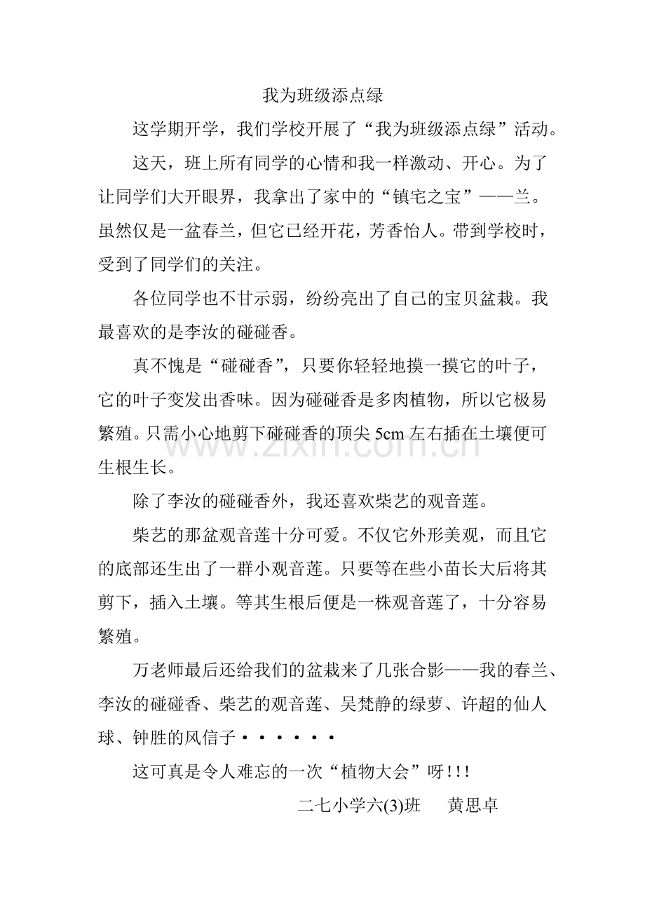 这学期开学,我们学校开展了“我为班级添点绿”活动。