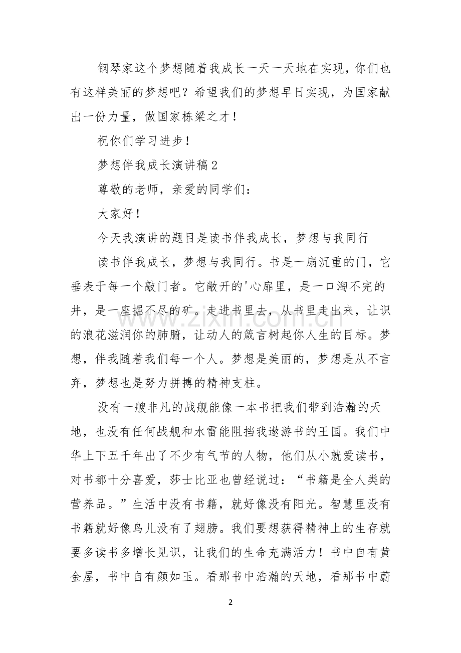 读书伴我成长,梦想与我同行。书是一扇沉重的门,它垂表于每一个敲门者。它敞开的'心扉里,是一口淘不完的井,是一座掘不尽的矿。走进书里去,从书里走出来,让识的浪花滋润你的肺腑,让动人的箴言树起你人生的目标。梦想,伴我随着我们每一个人。梦想是美丽的,梦想是从不言弃,梦想也是努力拼搏的精神支柱。