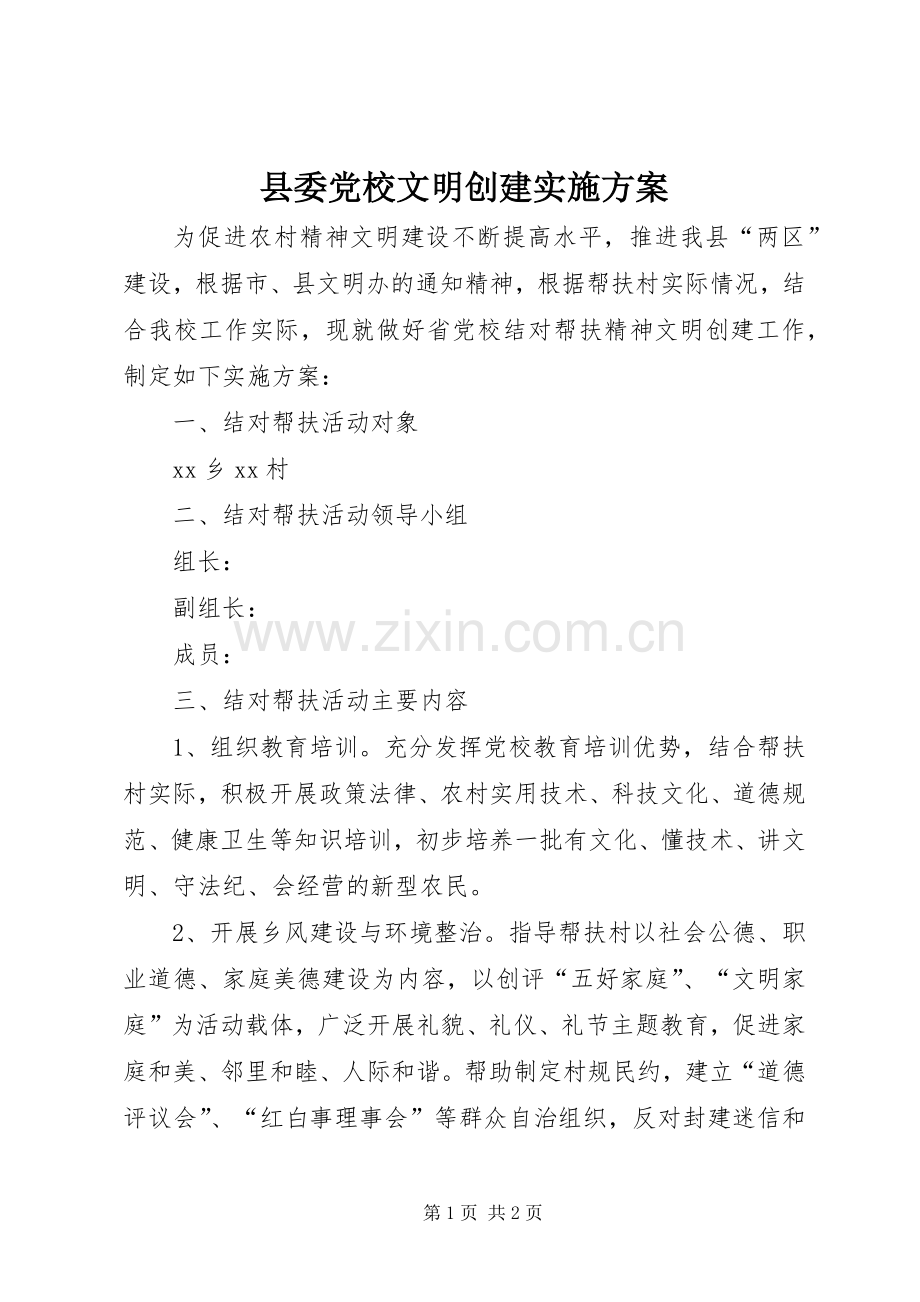 为促进农村精神文明建设不断提高水平,推进我县“两区”建设,根据市、县文明办的通知精神,根据帮扶村实际情况,结合我校工作实际,现就做好省党校结对帮扶精神文明创建工作,制定如下实施方案: