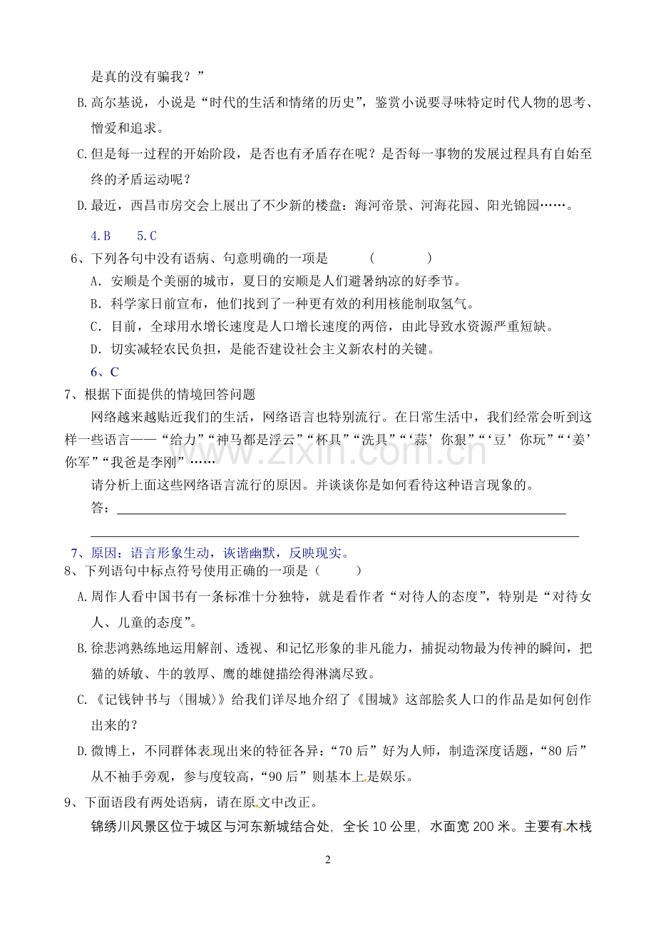 8、A 9、(1)将“摩托艇”删掉。 (2)在“赏夜景”前加“此地是”