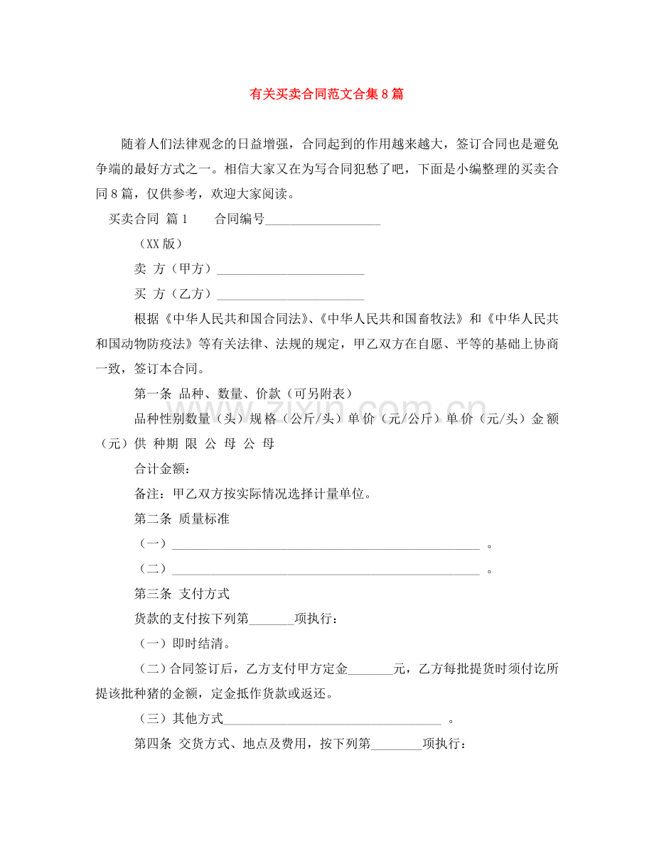 随着人们法律观念的日益增强,合同起到的作用越来越大,签订合同也是避免争端的最好方式之一。相信大家又在为写合同犯愁了吧,下面是小编整理的买卖合同8篇,仅供参考,欢迎大家阅读。