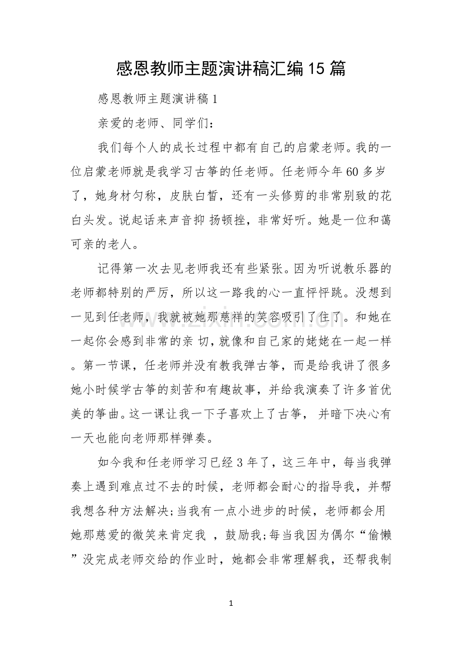 感恩教师主题演讲稿汇编15篇