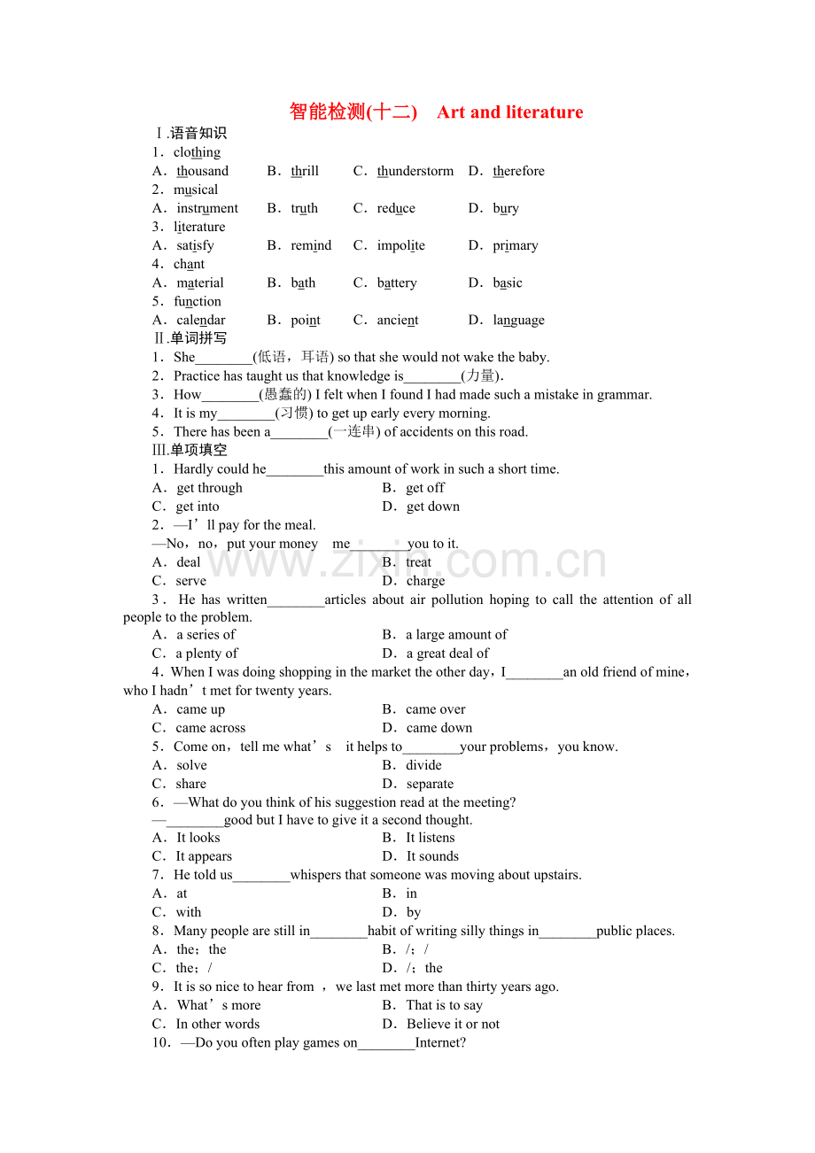 1.A 句意为:他几乎没能在如此短时间内完成这些工作。get through成功,通过,完成。