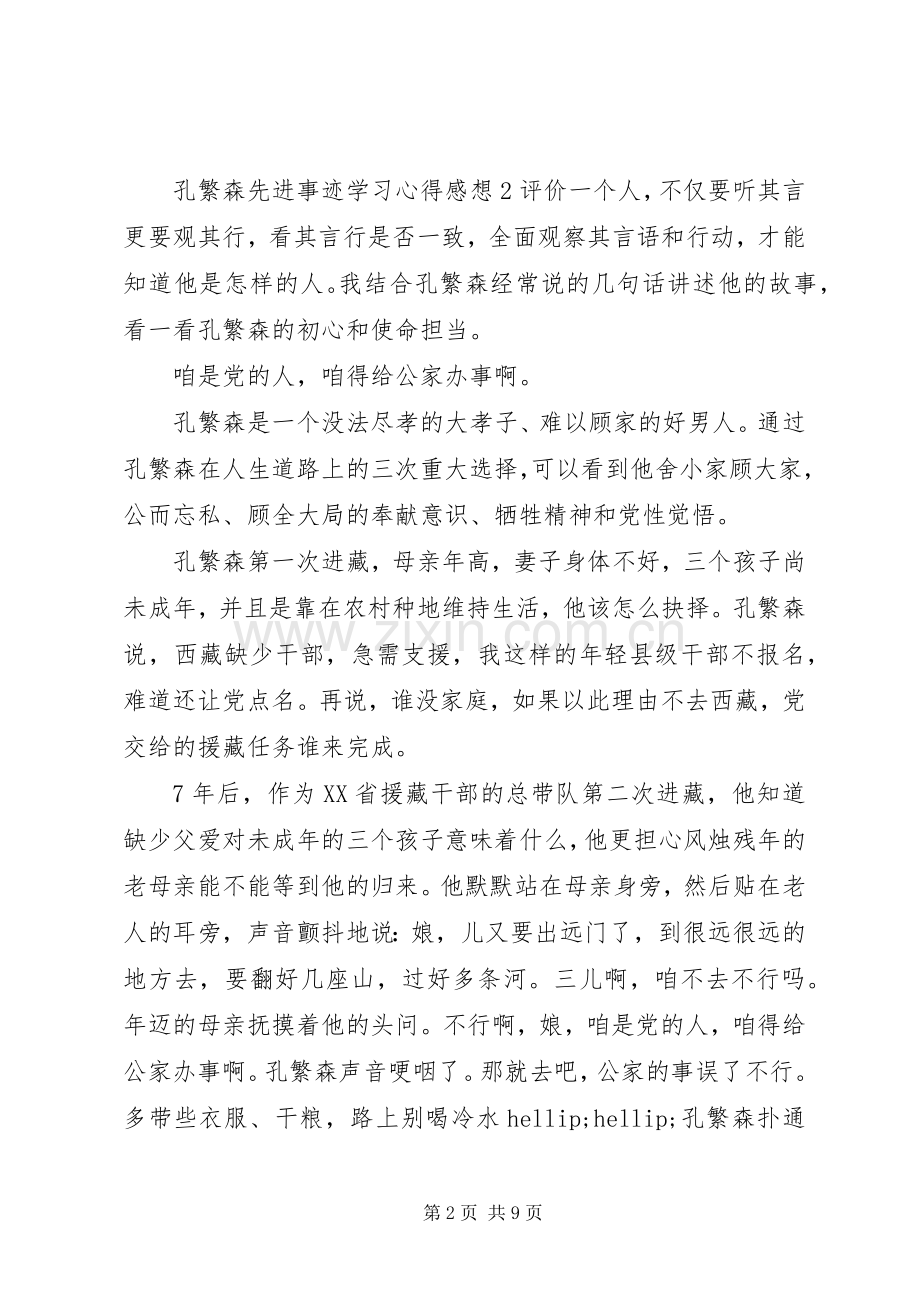 孔繁森先进事迹学习心得感想