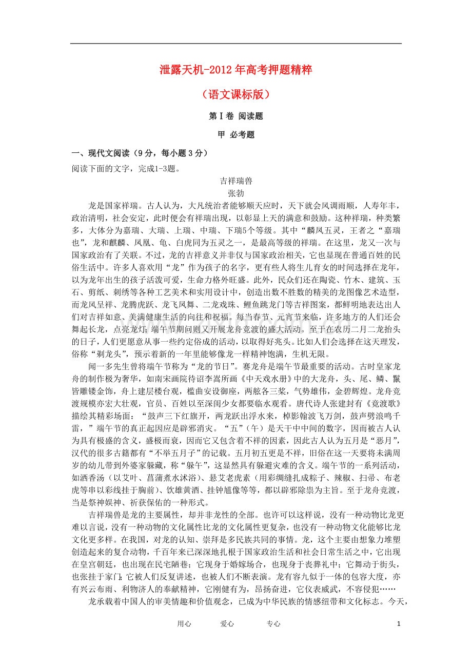 泄露天机-2012年高考押题精粹