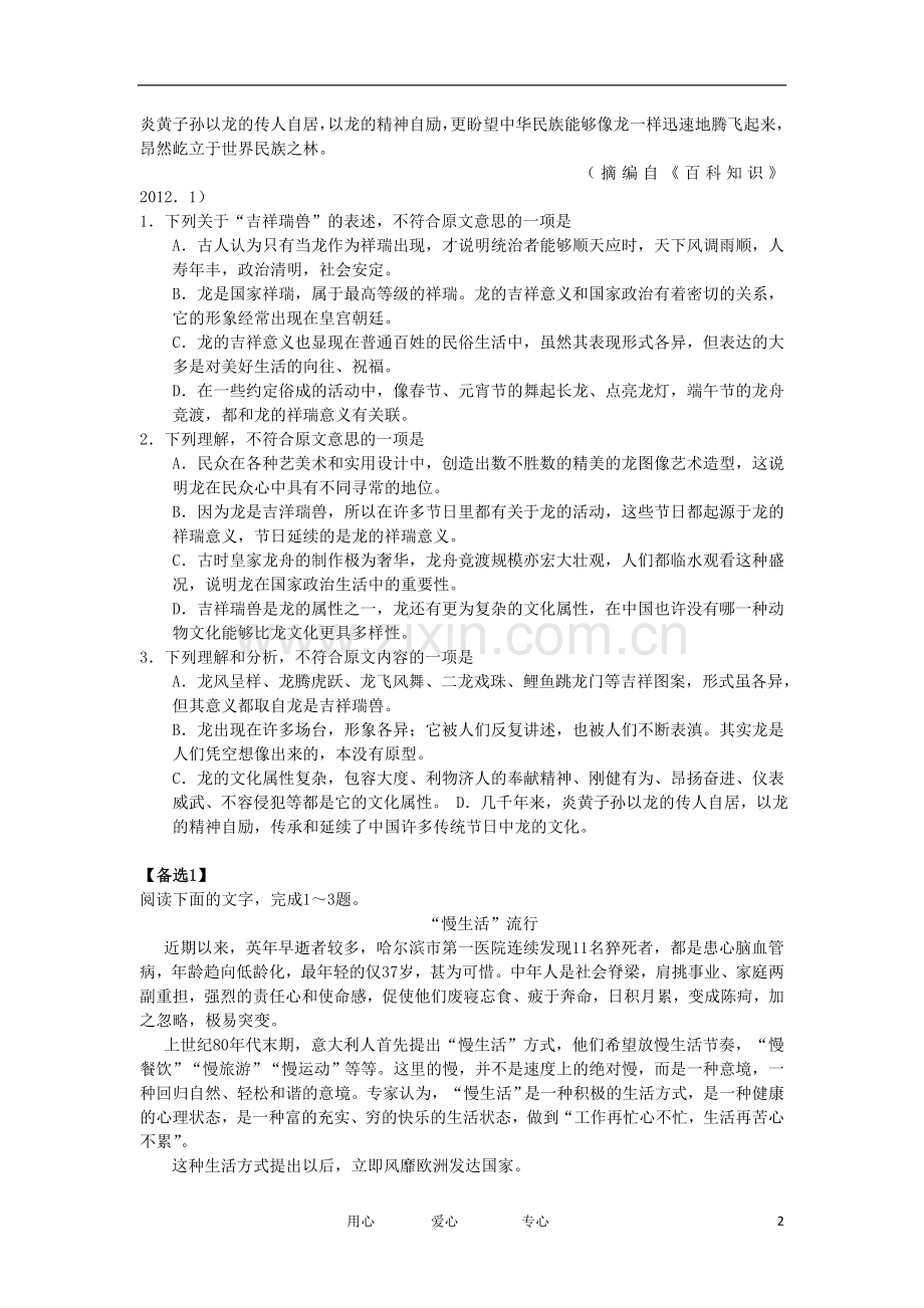 1.下列各项中,对“慢生活”理解正确的一项是 ( )