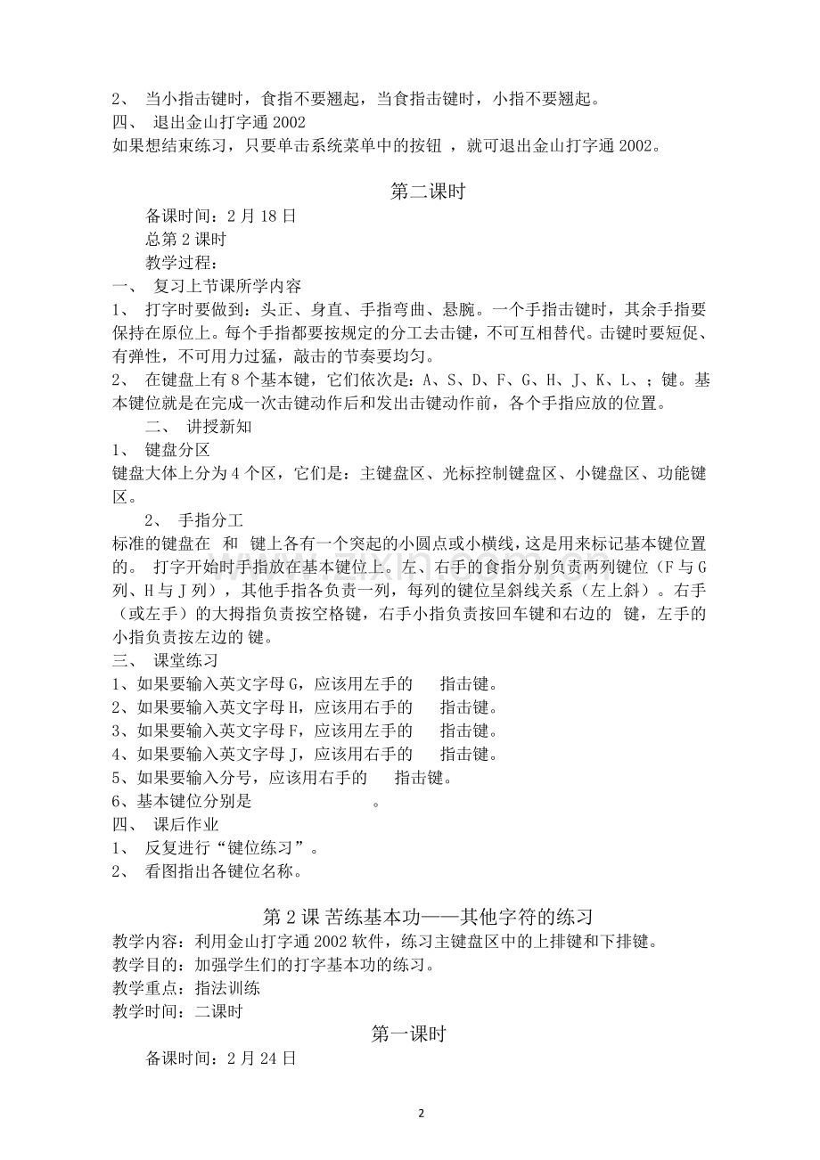 1、 当用食指击键时,其余三个手指应保持在各自的基本键上,不要翘起。