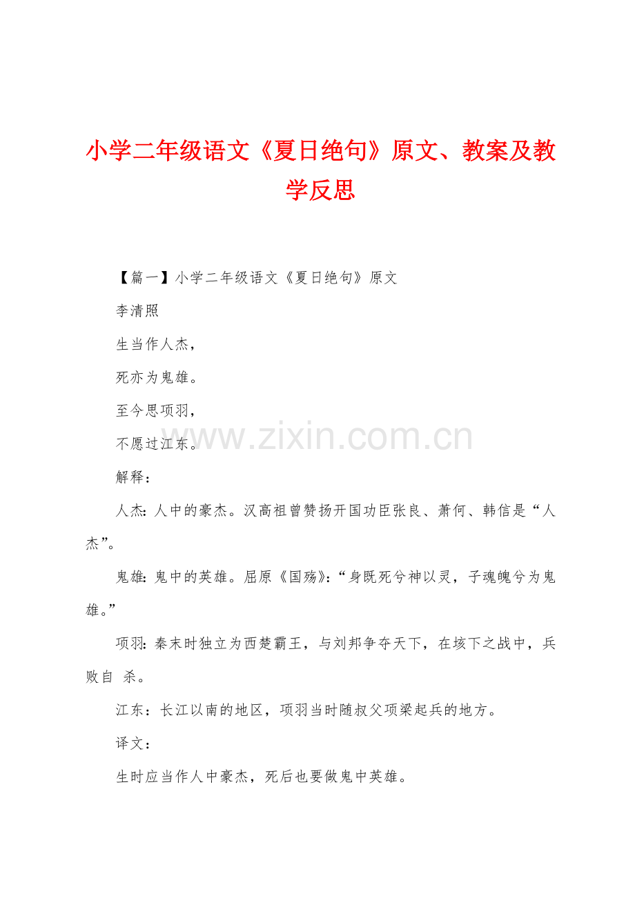 小学二年级语文《夏日绝句》原文、教案及教学反思