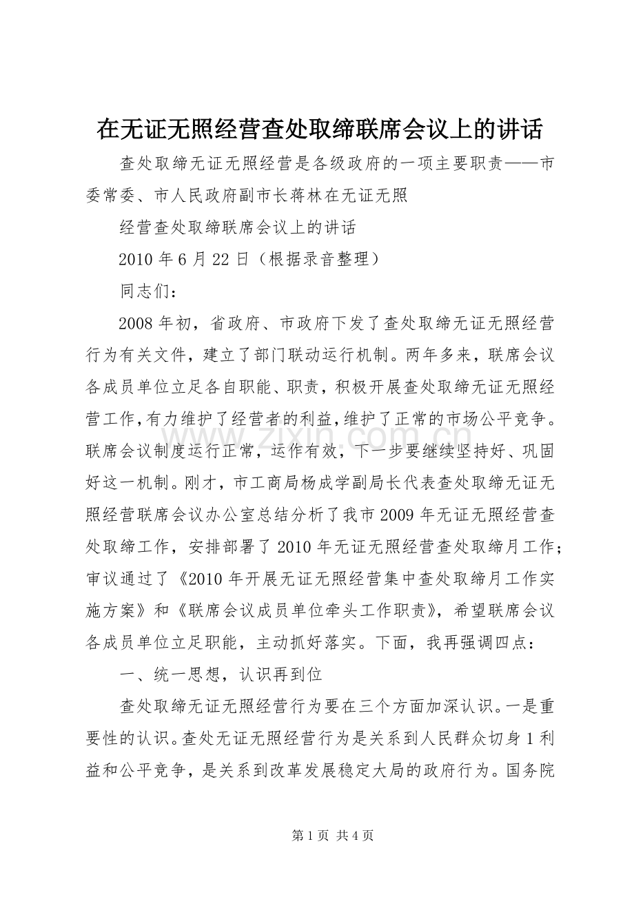 查处取缔无证无照经营是各级政府的一项主要职责——市委常委、市人民政府副市长蒋林在无证无照