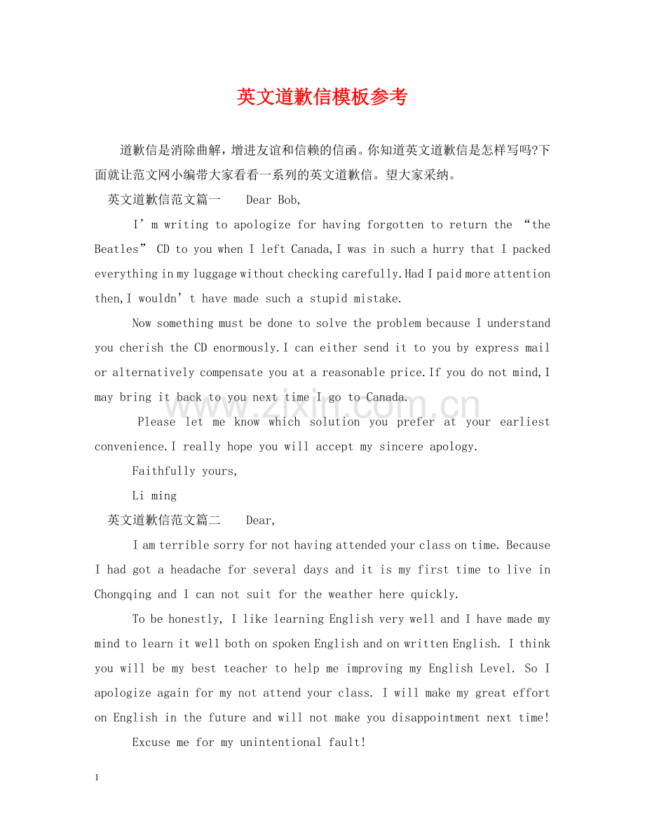 道歉信是消除曲解,增进友谊和信赖的信函。你知道英文道歉信是怎样写吗?下面就让范文网小编带大家看看一系列的英文道歉信。望大家采纳。