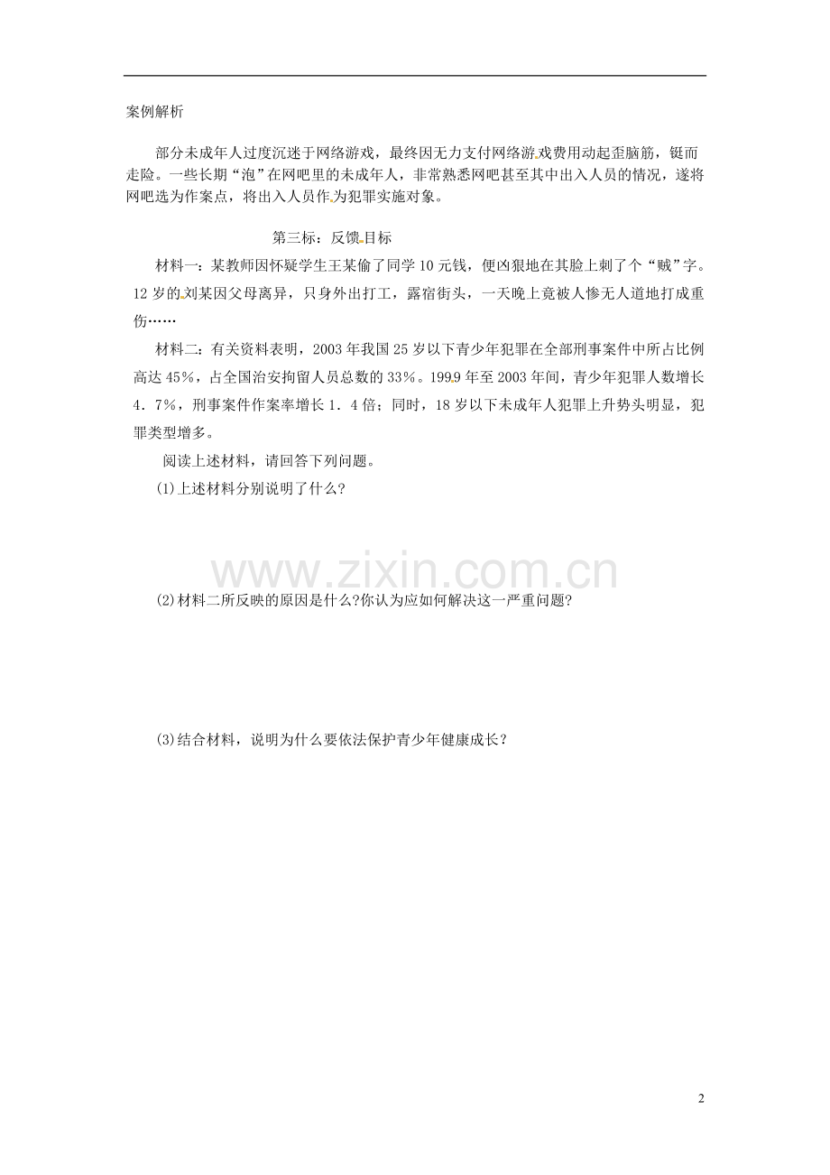 2、 过程与方法:(1)通过一些未成年人犯罪的例子,学生认识未成年人犯罪。(2)通过结合实际生活的例子,理解为什么未成年人的健康成长需要法律的特殊保护。