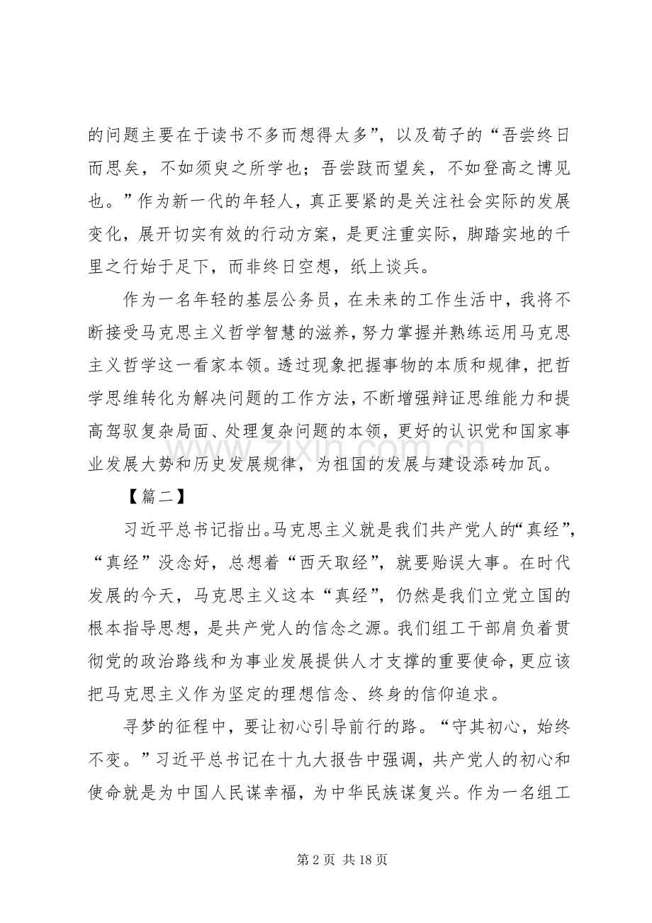 作为一名年轻的基层公务员,在未来的工作生活中,我将不断接受马克思主义哲学智慧的滋养,努力掌握并熟练运用马克思主义哲学这一看家本领。透过现象把握事物的本质和规律,把哲学思维转化为解决问题的工作方法,不断增强辩证思维能力和提高驾驭复杂局面、处理复杂问题的本领,更好的认识党和国家事业发展大势和历史发展规律,为祖国的发展与建设添砖加瓦。