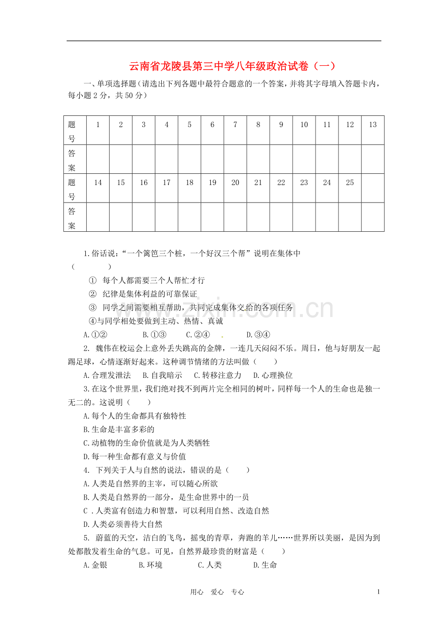 3.在这个世界里,我们绝对找不到两片完全相同的树叶,同样每一个人的生命也是独一无二的。这说明( )