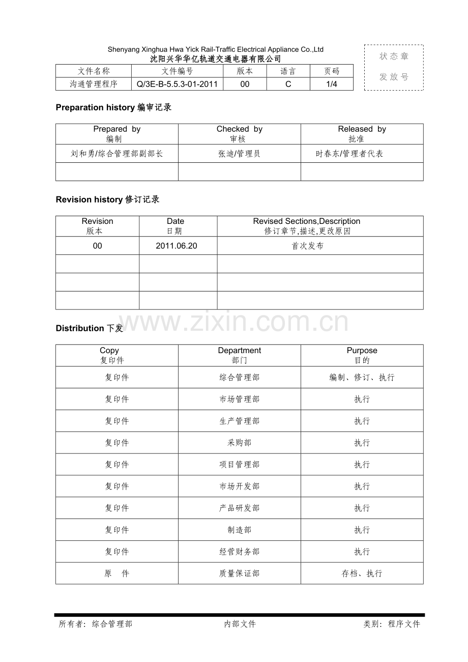 5.5质量保证部负责管理体系运行有效性的信息交流和沟通的处理。