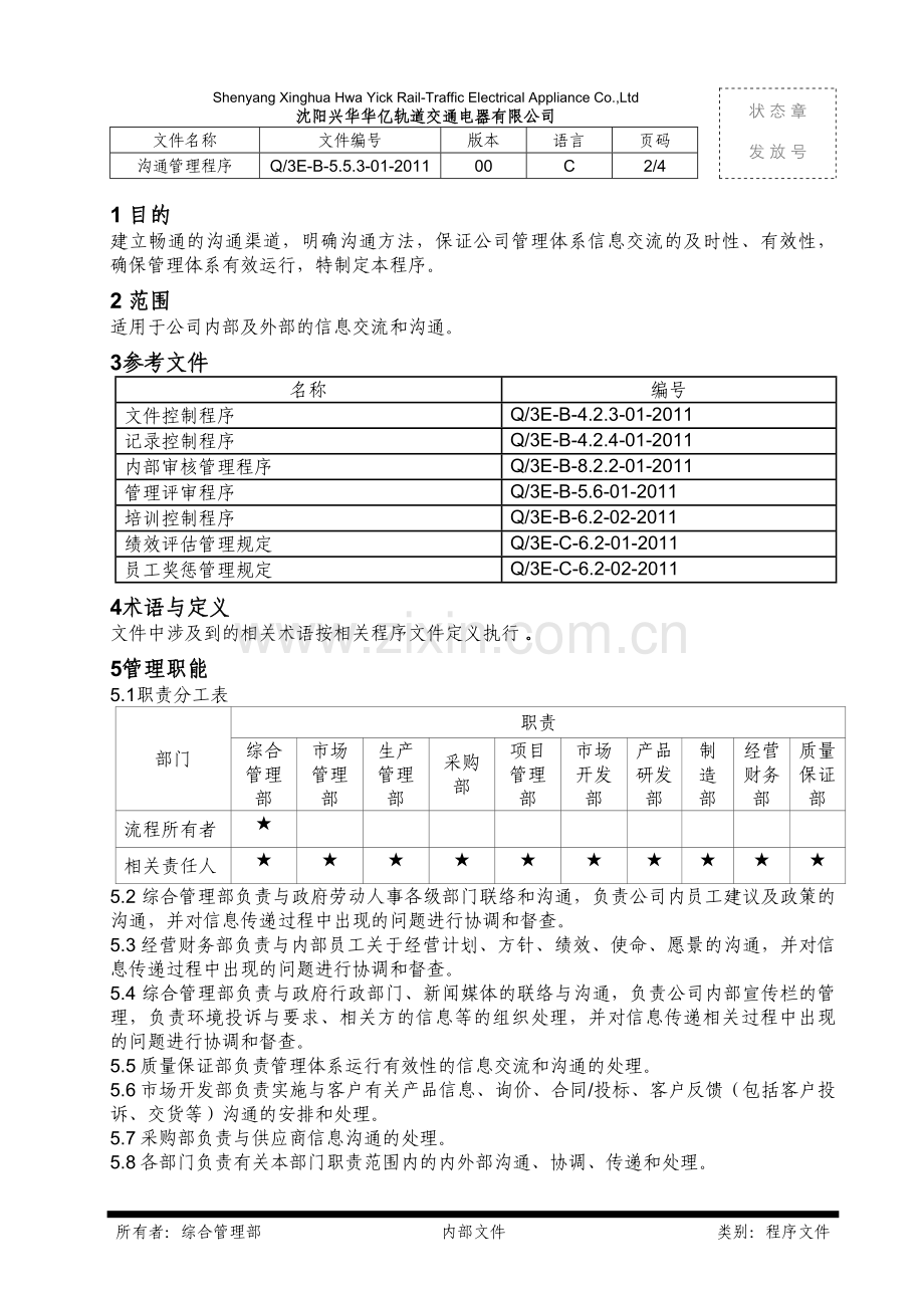 5.8各部门负责有关本部门职责范围内的内外部沟通、协调、传递和处理。