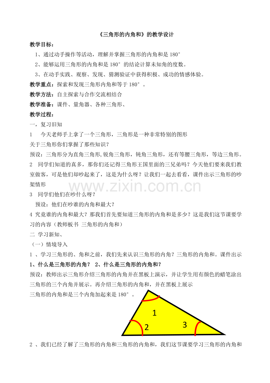 《三角形的内角和》的教学设计