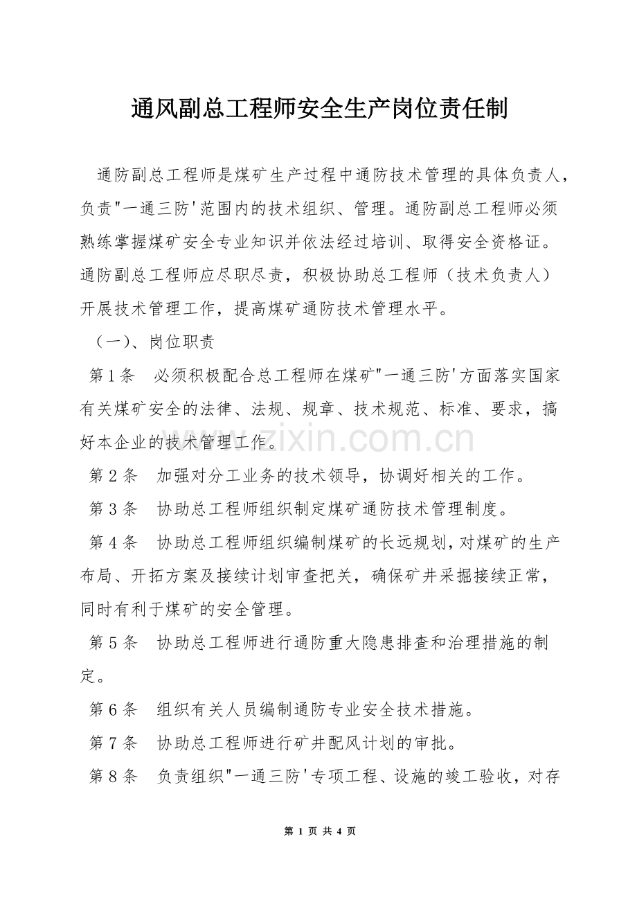 第3条 协助总工程师组织制定煤矿通防技术管理制度。