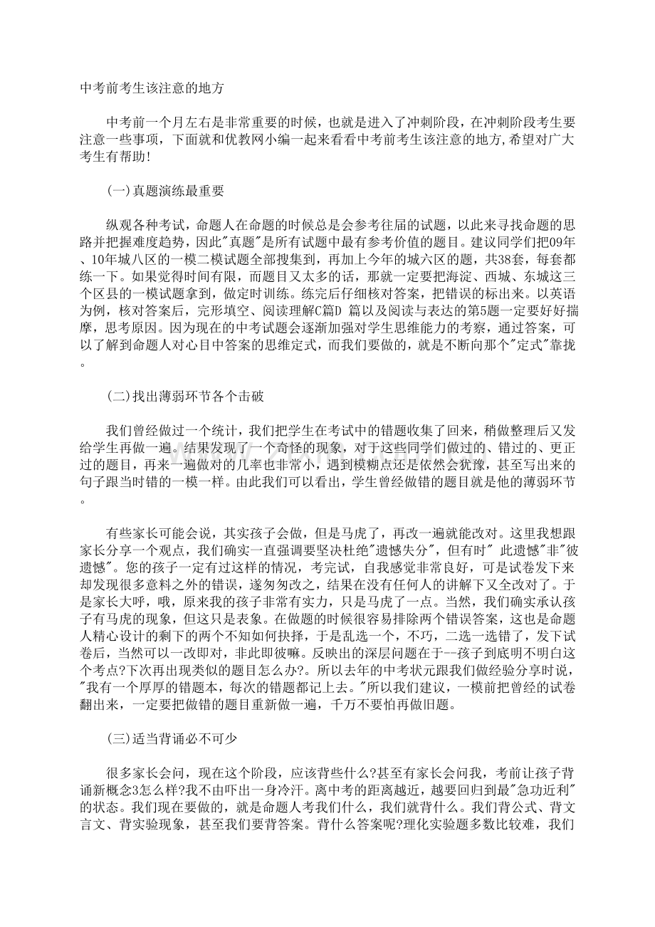 中考前一个月左右是非常重要的时候,也就是进入了冲刺阶段,在冲刺阶段考生要注意一些事项,下面就和优教网小编一起来看看中考前考生该注意的地方,希望对广大考生有帮助!