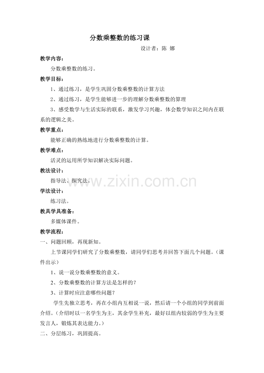 1、通过练习,是学生巩固分数乘整数的计算方法