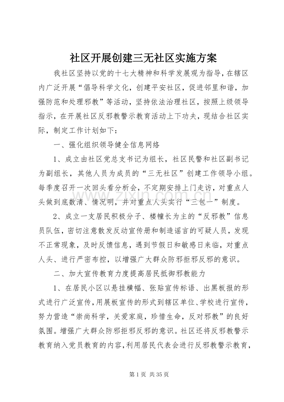 第二篇:三无创建实施方案关于在地区开展创建“三无”社区