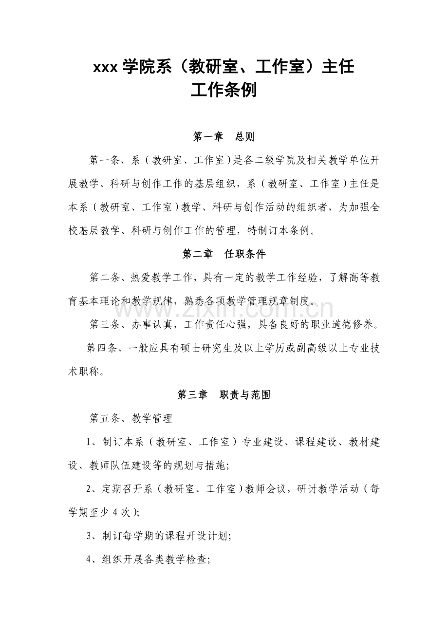 第八条、系(教研室、工作室)主任属于兼职教学管理岗位,其行政上受所在教学单位领导。