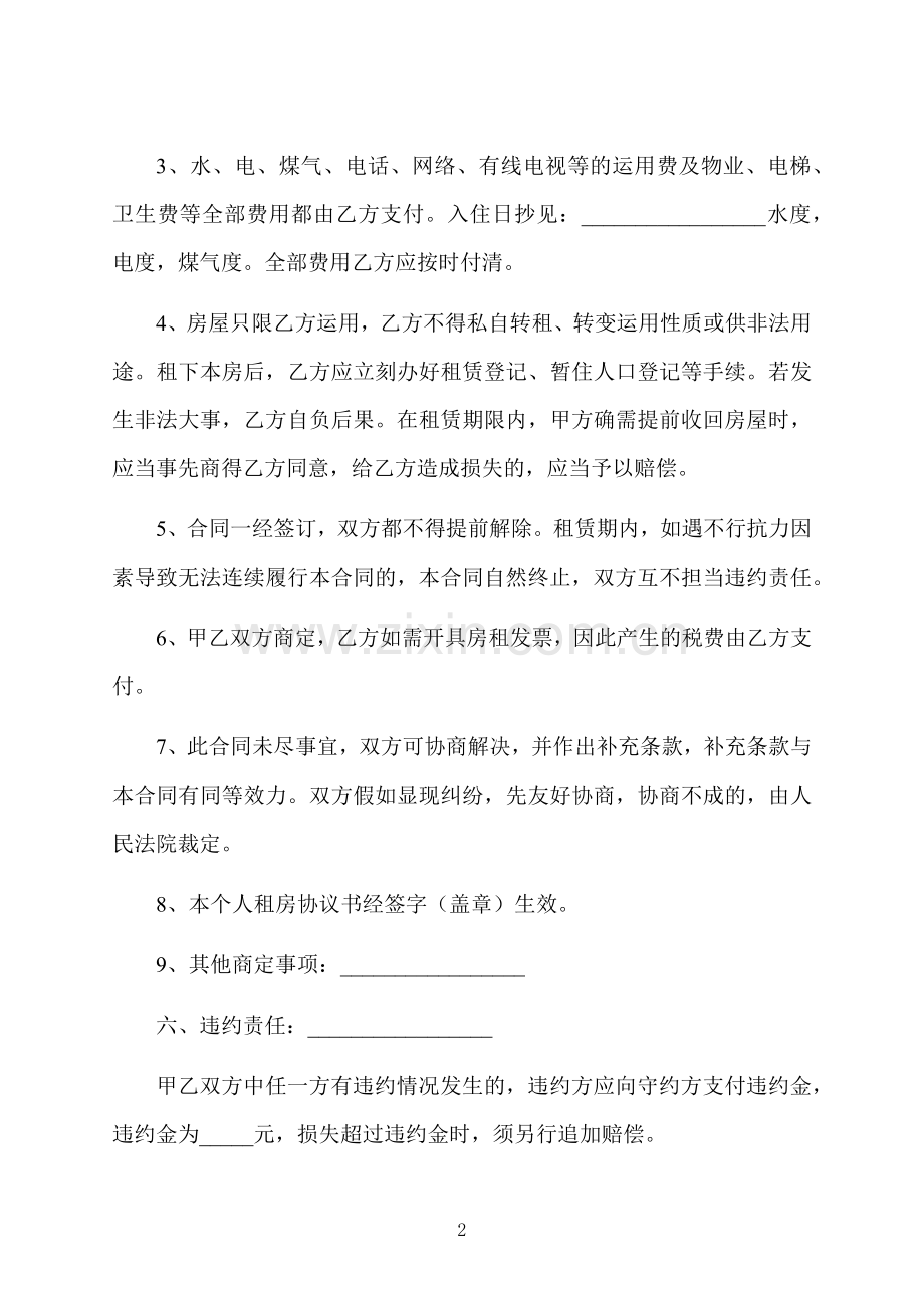 现经甲乙双方充足了解、协商,全都达成如下个人租房协议书:_________________