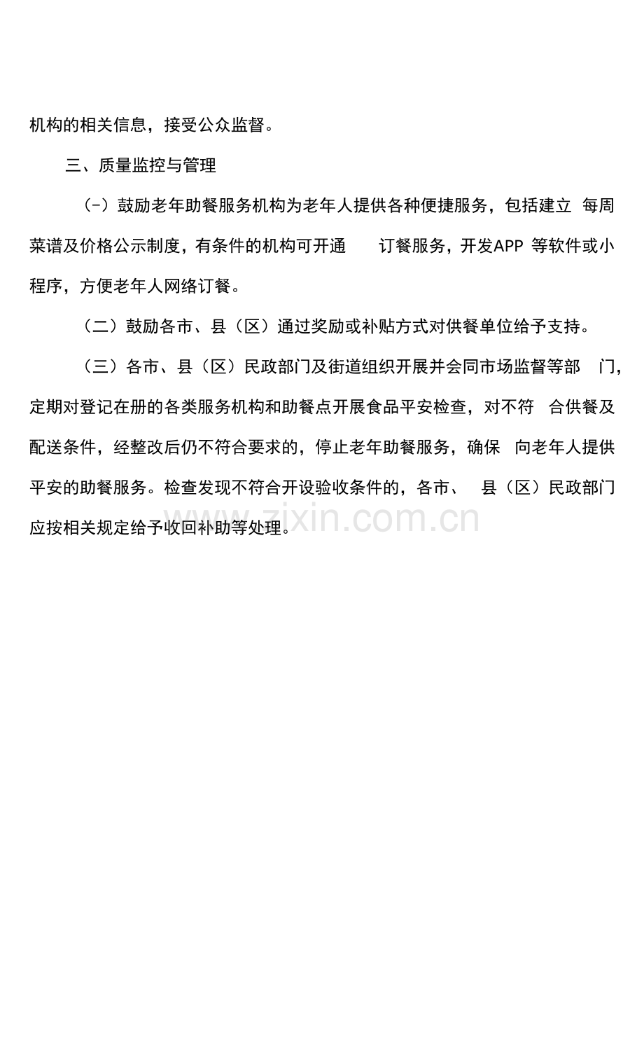 (三)市级民政部门通过网站、公众号等载体,定期向社会公开助餐 服务机构的相关信息,接受公众监督。