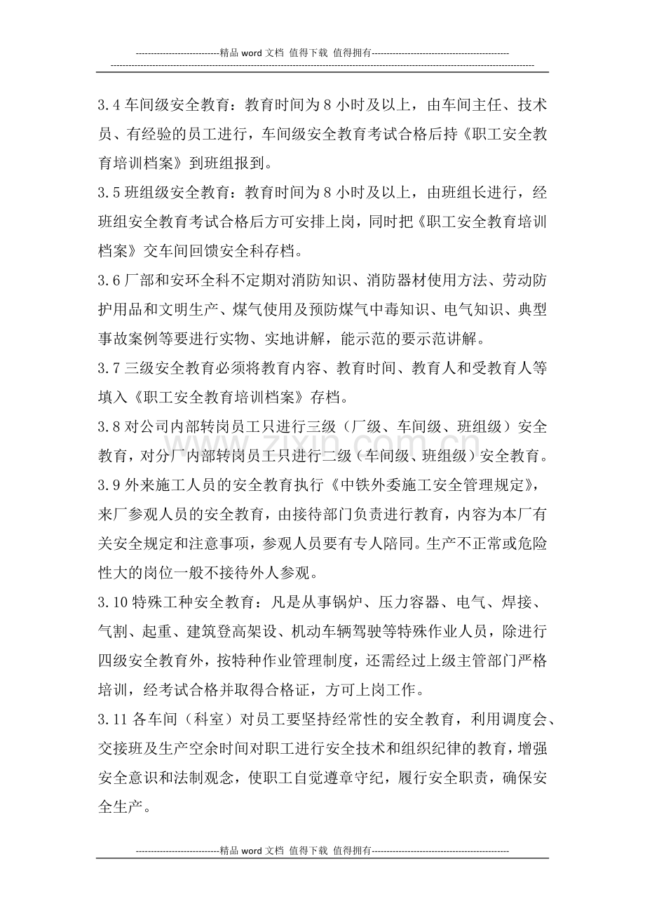 3.8对公司内部转岗员工只进行三级(厂级、车间级、班组级)安全教育,对分厂内部转岗员工只进行二级(车间级、班组级)安全教育。