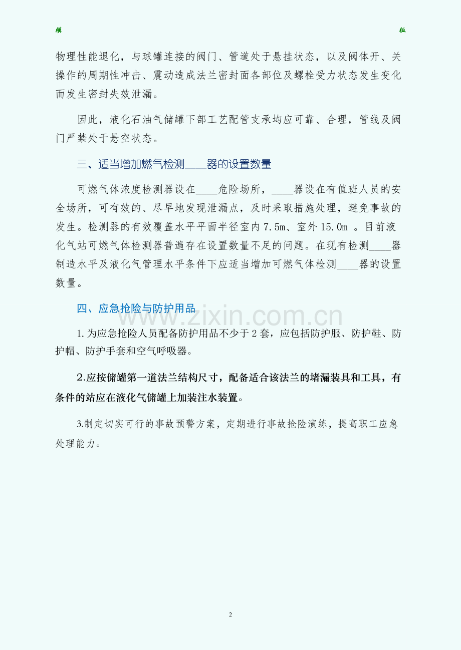 2.应按储罐第一道法兰结构尺寸,配备适合该法兰的堵漏装具和工具,有条件的站应在液化气储罐上加装注水装置。