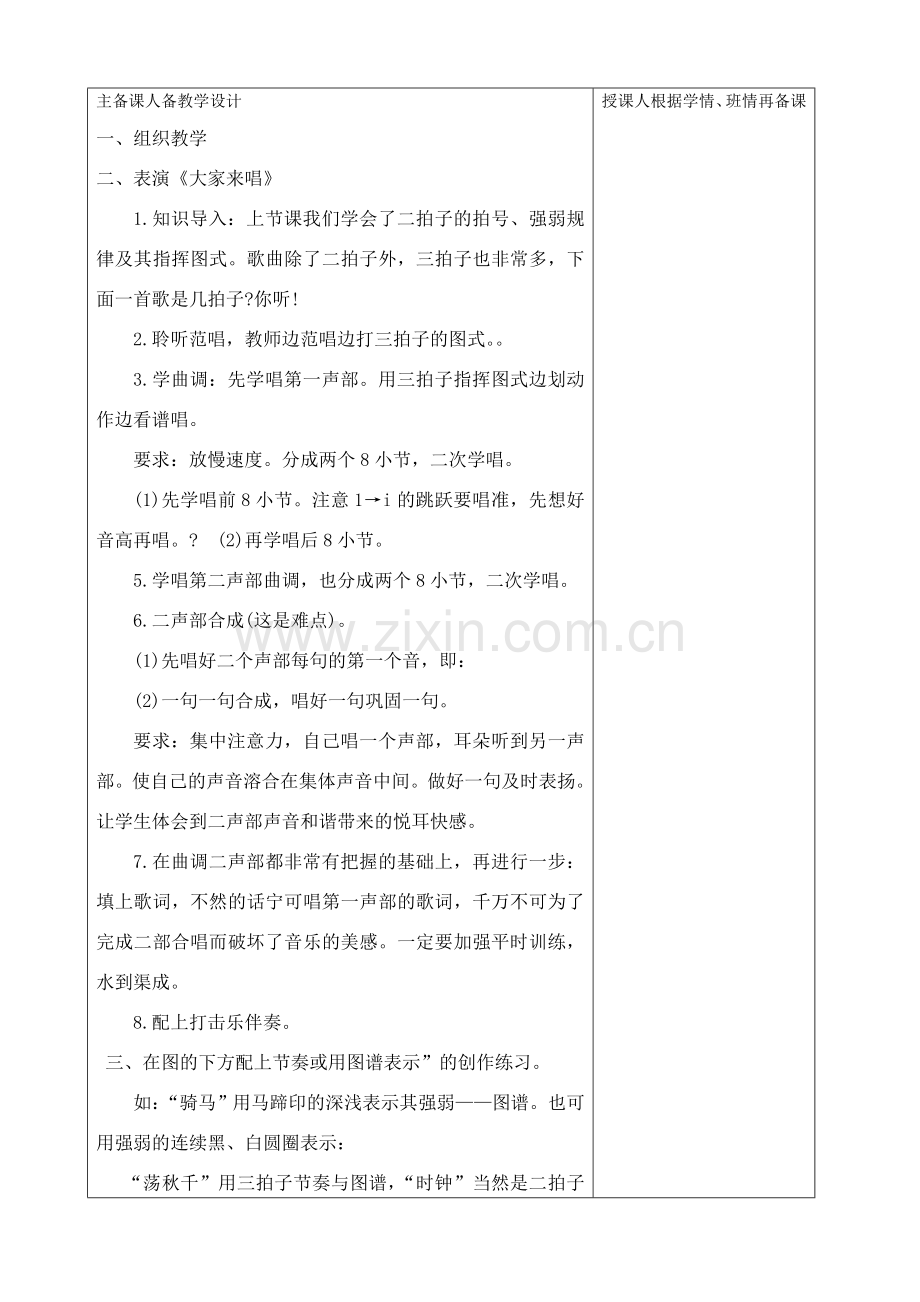 “荡秋千”用三拍子节奏与图谱,“时钟”当然是二拍子的节奏。