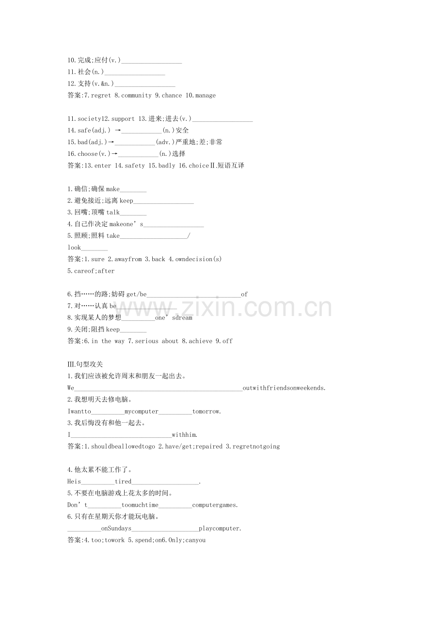 答案:13.enter 14.safety 15.badly 16.choiceⅡ.短语互译