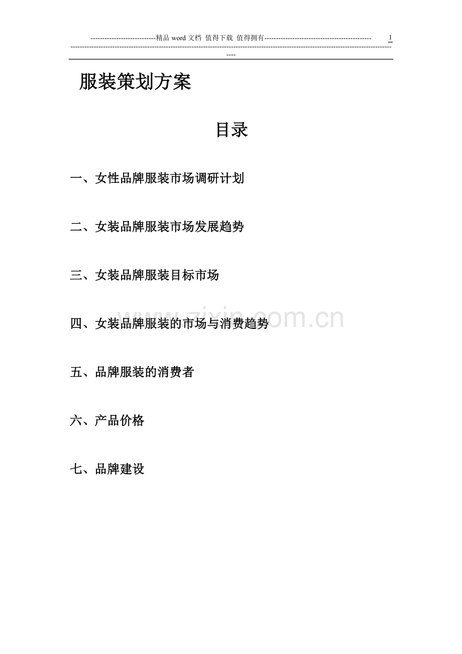 一、女性品牌服装市场调研计划
