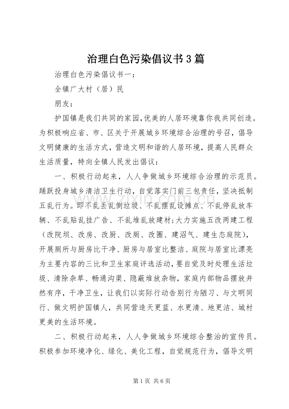 治理白色污染倡议书3篇