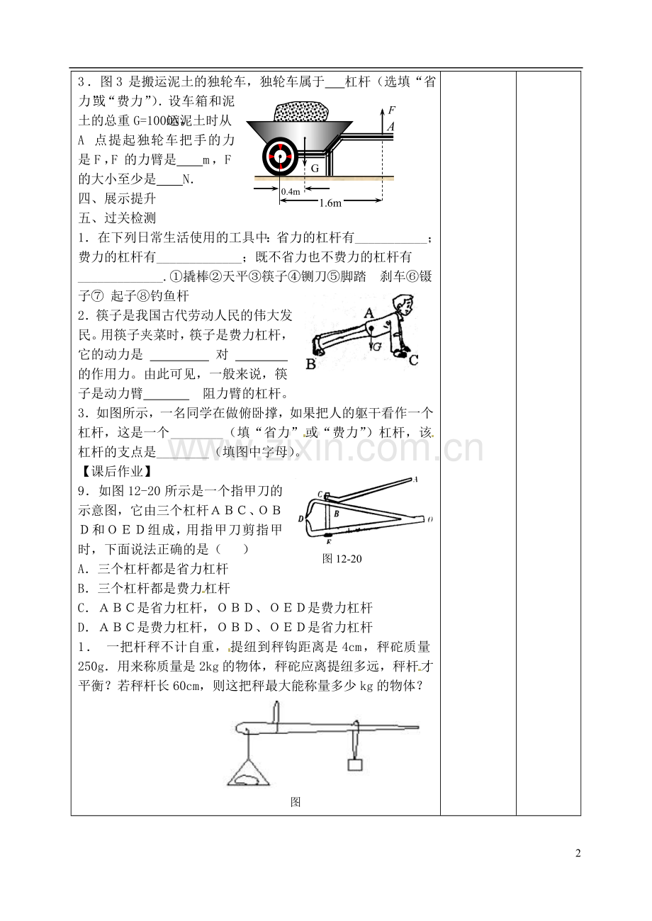 1. 知道什么是省力杠杆、费力杠杆、等臂杠杆;