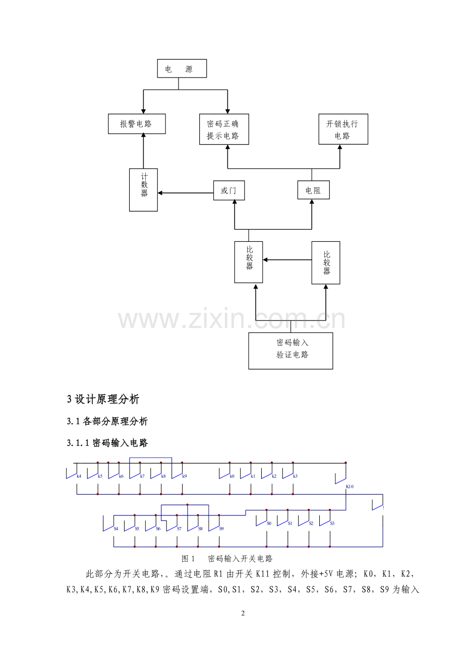 3.1.1密码输入电路…………………………………………………………………………3
