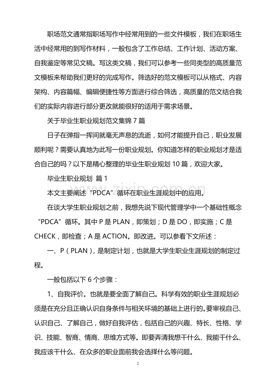 关于毕业生职业规划范文集锦7篇
