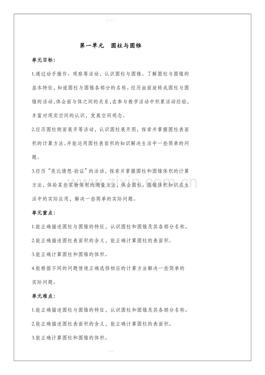 第一单元 圆柱与圆锥