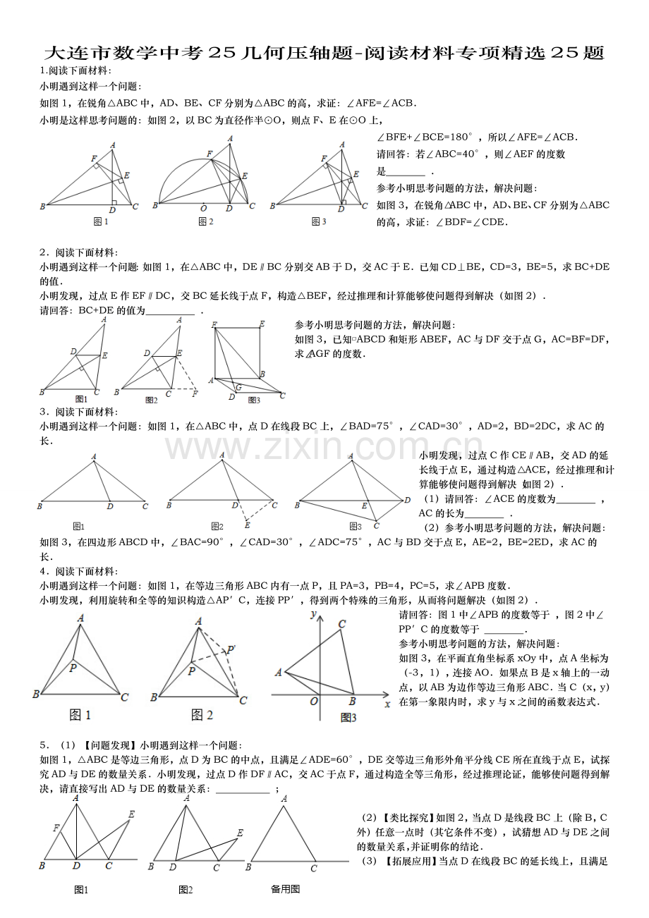 大连市数学中考25几何压轴题-阅读材料专项精选25题