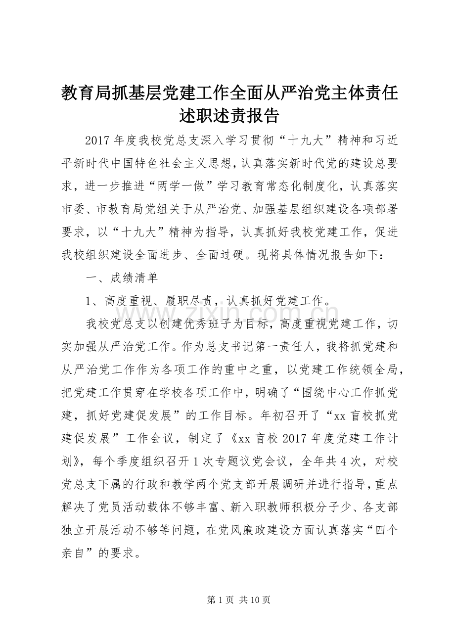教育局抓基层党建工作全面从严治党主体责任述职述责报告