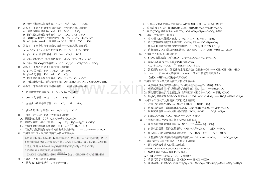 高三化学小练(有关阿佛加德罗常数考查、离子共存、离子方程式正误判断)