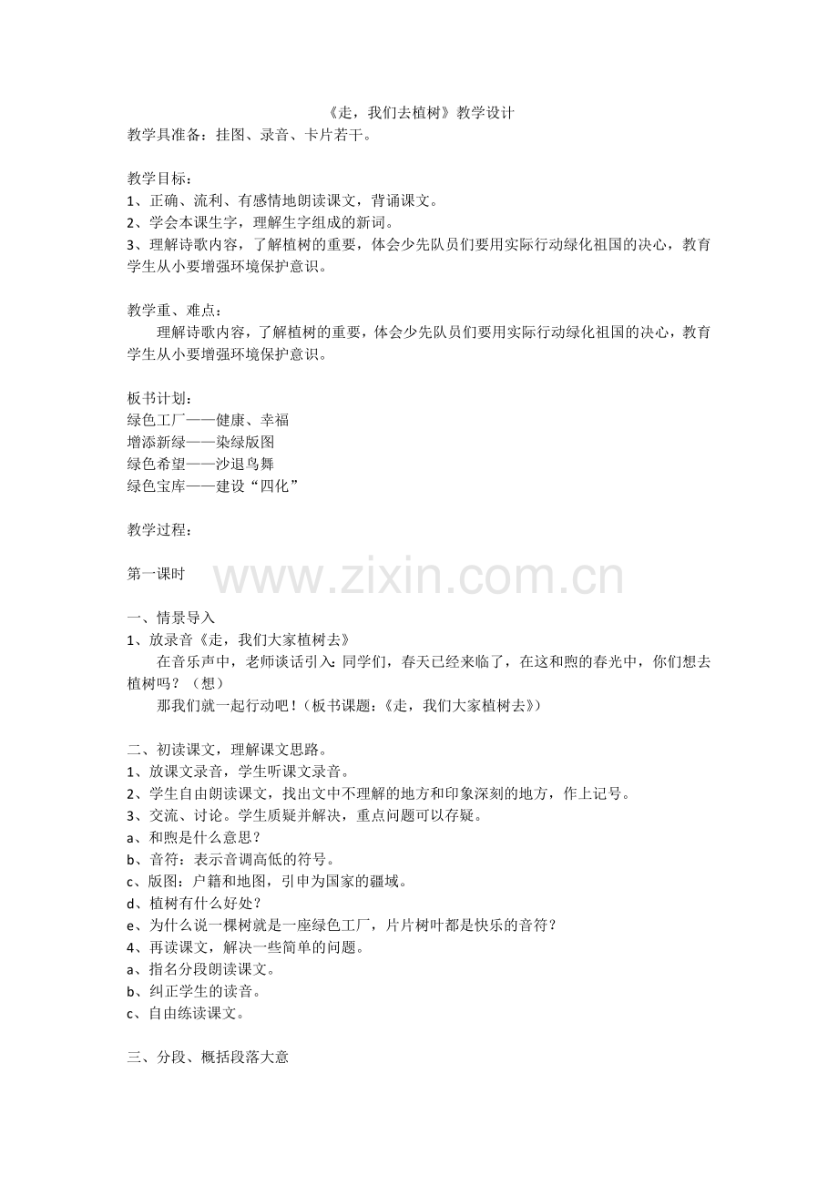 那我们就一起行动吧!(板书课题:《走,我们大家植树去》)