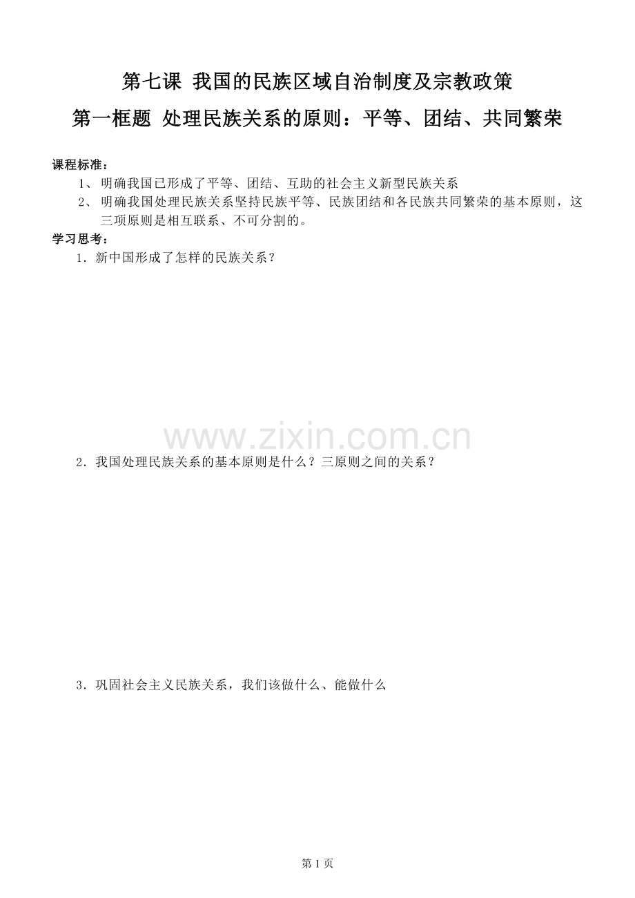 第一框题 处理民族关系的原则:平等、团结、共同繁荣