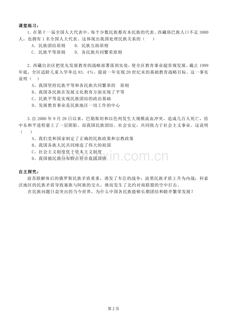 1、 明确我国已形成了平等、团结、互助的社会主义新型民族关系