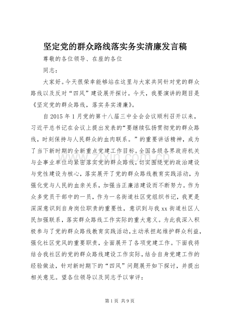 坚定党的群众路线落实务实清廉发言稿